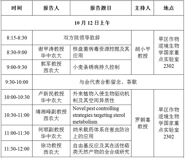 二、报告地点:旱区作物逆境生物学国家重点实验室2302
